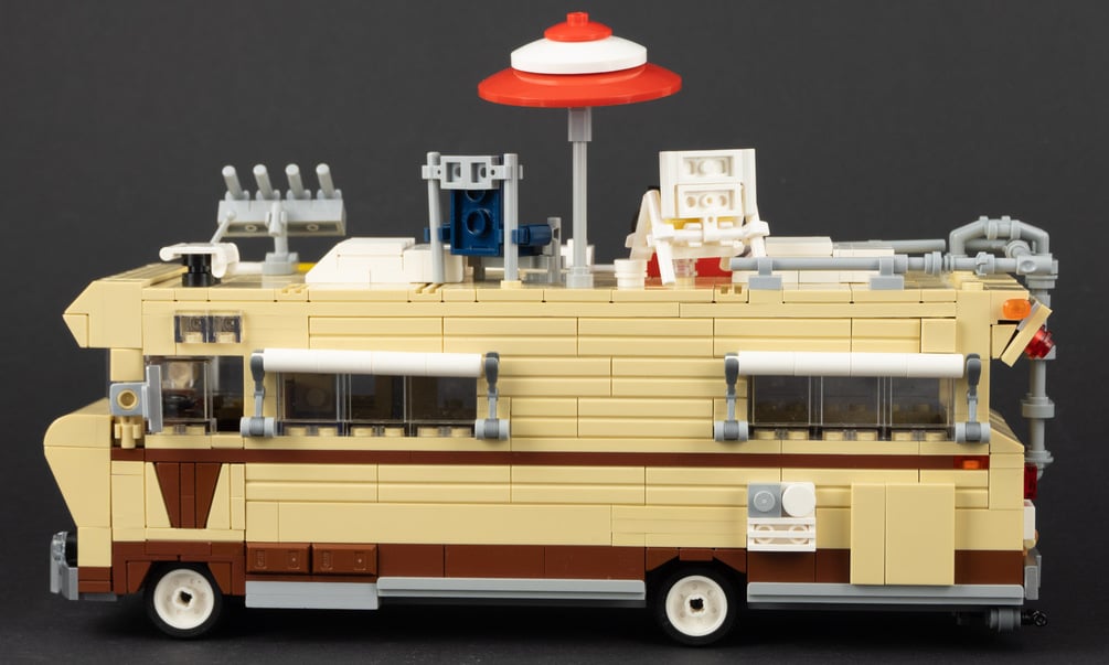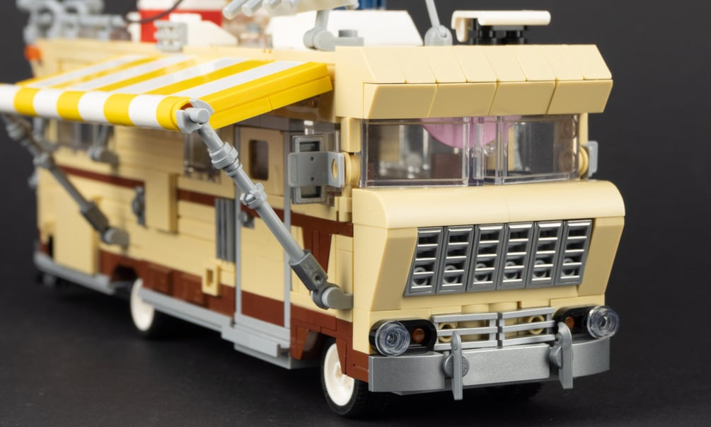 The van comes with a very detailed exterior, chairs on the roof and camper awning.