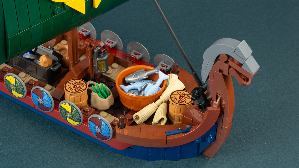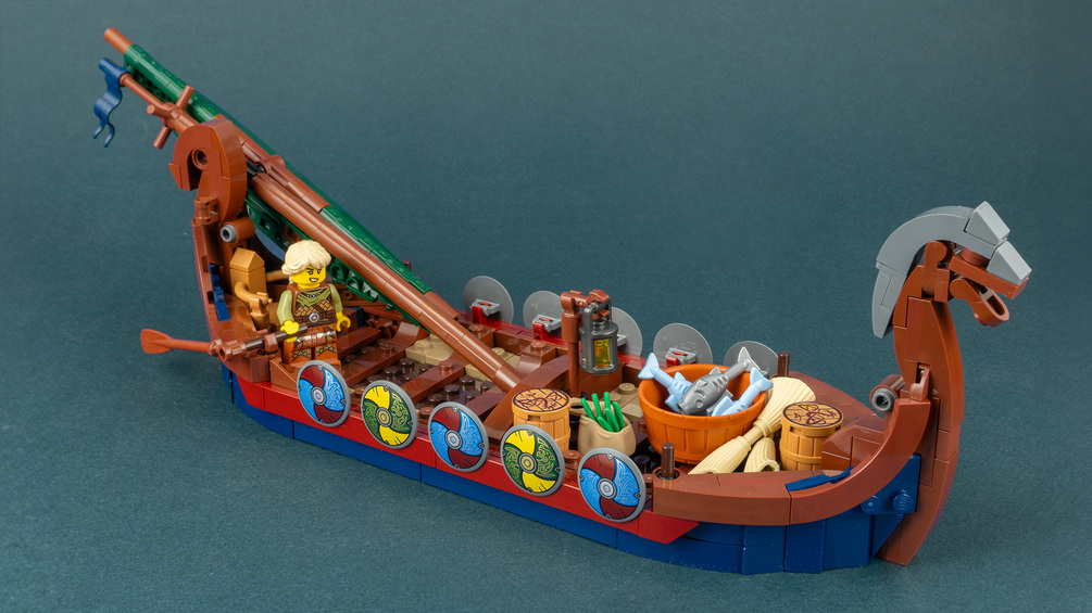 Build my updated Viking Longship and let your Norse warriors roam the seas! The ship has detailed ornaments, a foldable mast and seats for up to 11 Minifigures. You can choose between two sail variants, one hoisted and furled, The ship makes usage of the new LEGO Viking elements from the LEGO Ideas Viking Village set.